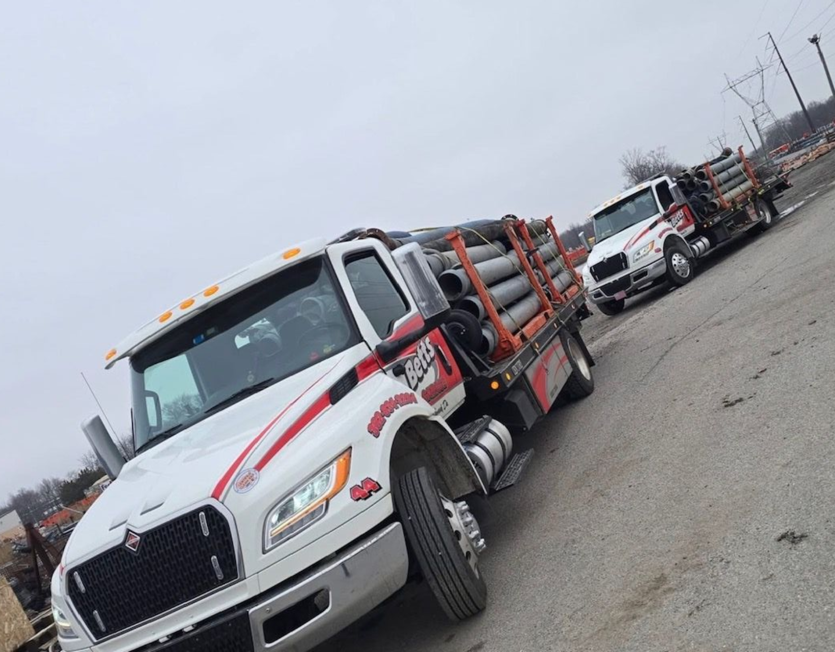 At Betts Garage, our work goes beyond towing vehicles. Our hauling division regularly transports equipment, materials, and specialized loads for businesses across the region. Recently, two of our flatbeds were on the move transporting pipe safely and efficiently — another example of the kind of work our operators handle every day. With the right equipment and experienced drivers behind the wheel, we ensure loads are transported securely and delivered where they need to go.