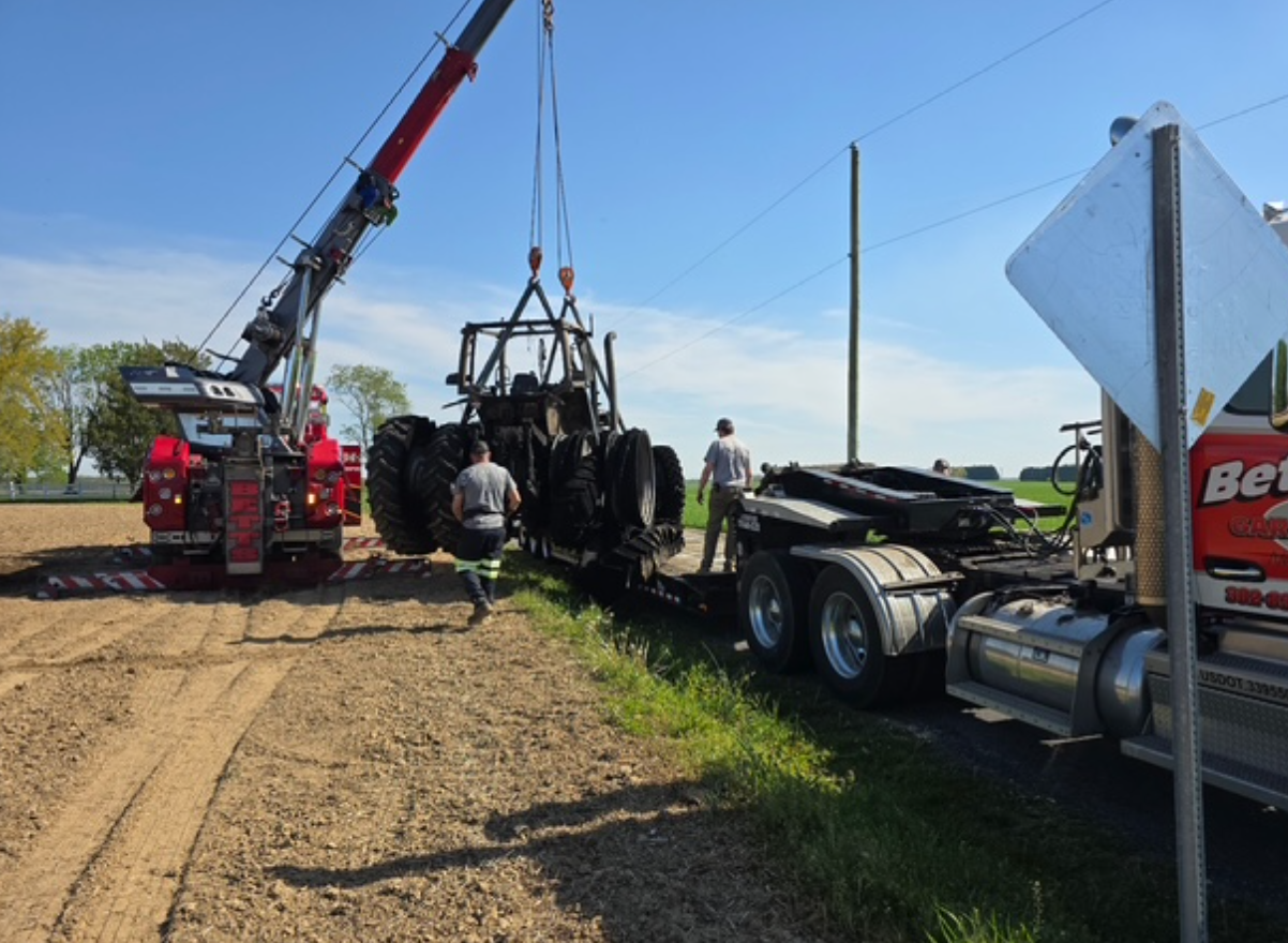 Recently, our crew took on a challenging recovery: lifting a large, burnt farm tractor using our rotator and safely securing it for transport. It’s the kind of job where precision, coordination, and the right equipment make all the difference. Thanks to the seamless teamwork between our divisions, we delivered a recovery that was faster, safer, and more efficient from start to finish.